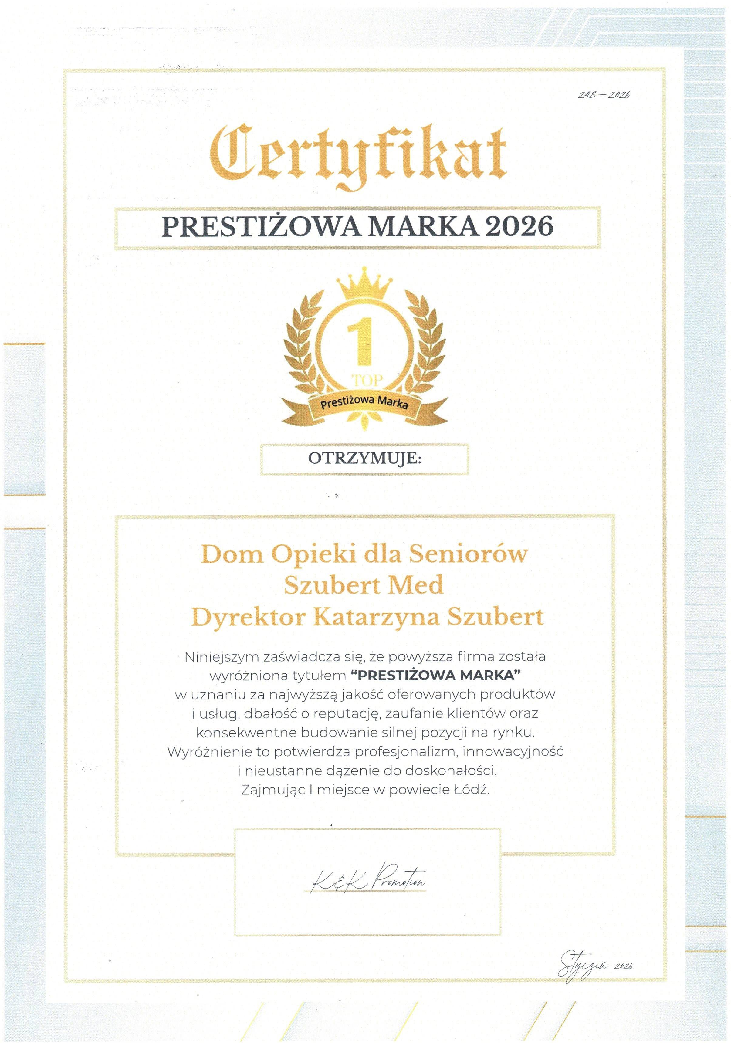 Równie ważnym wyróżnieniem jest dla nas Certyfikat Prestiżowa Marka, potwierdzający, że nasza firma postrzegana jest jako marka o wysokich standardach, stabilnej pozycji i jasno określonej wizji rozwoju. To dowód na to, że możliwe jest łączenie profesjonalizmu z pasją, doświadczenia z nowoczesnym podejściem oraz skuteczności biznesowej z dbałością o detale i jakość.
